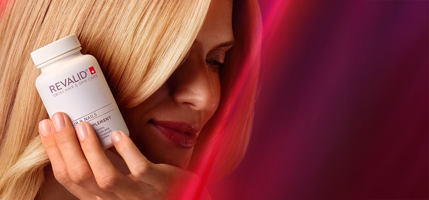 Díky švýcarské preciznosti a vědecky podloženému přístupu podporuje Revalid Hair Complex přirozený keratinový cyklus vlasů zevnitř, takže vaše vlasy zůstávají silnější, zdravější a krásně odolné.